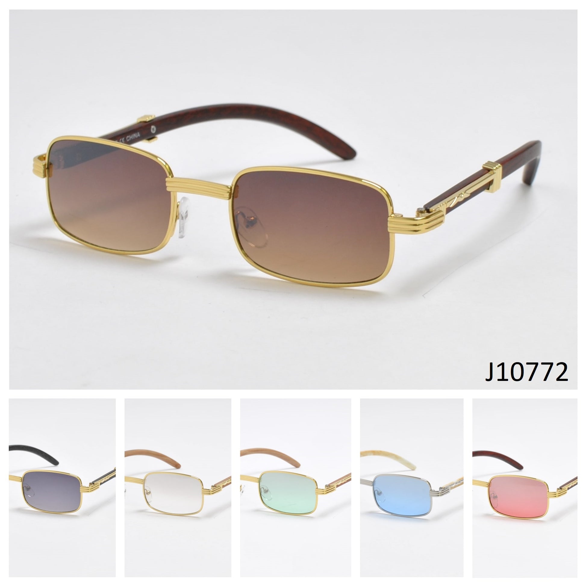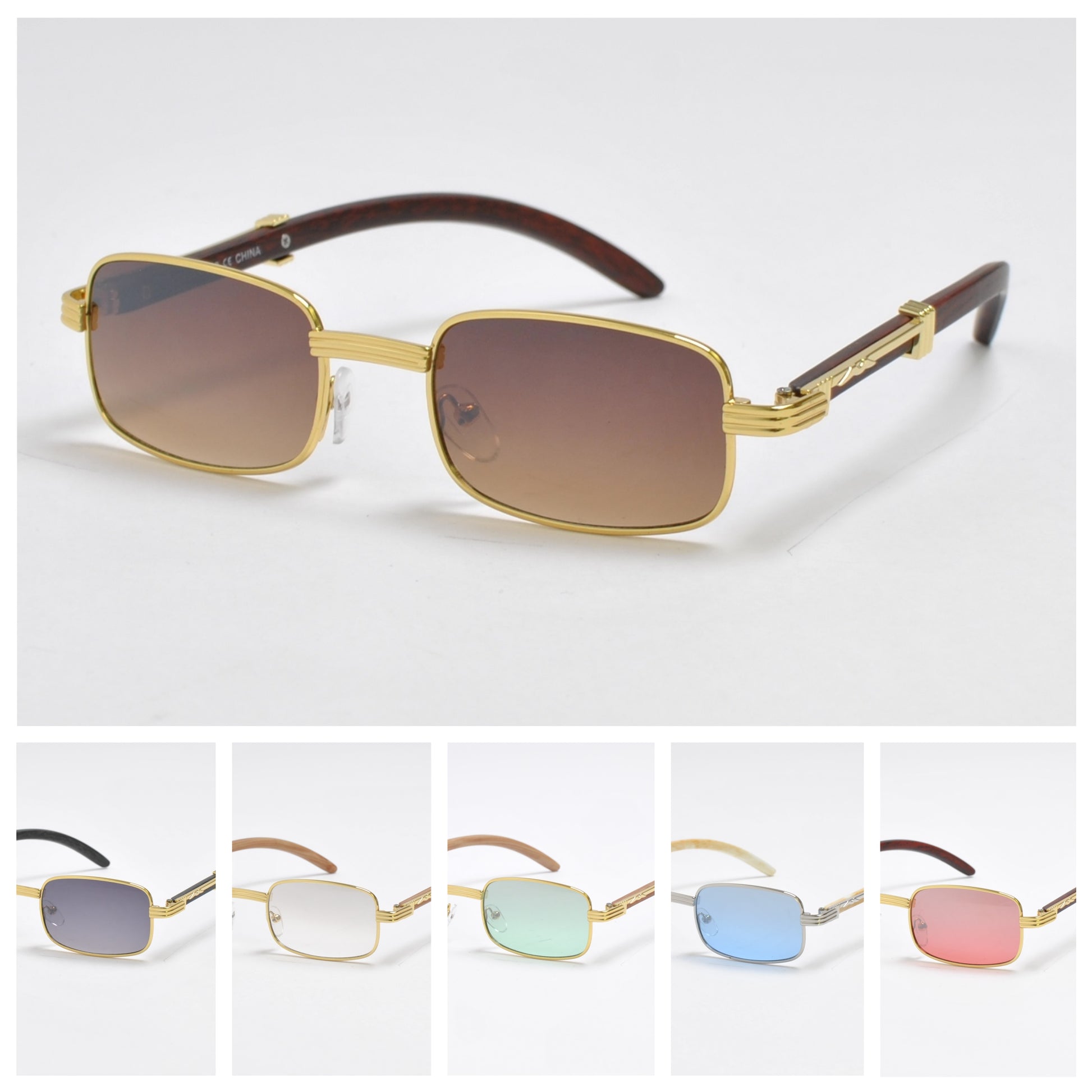 Metal Frame Sunglasses w/ Wood Accents