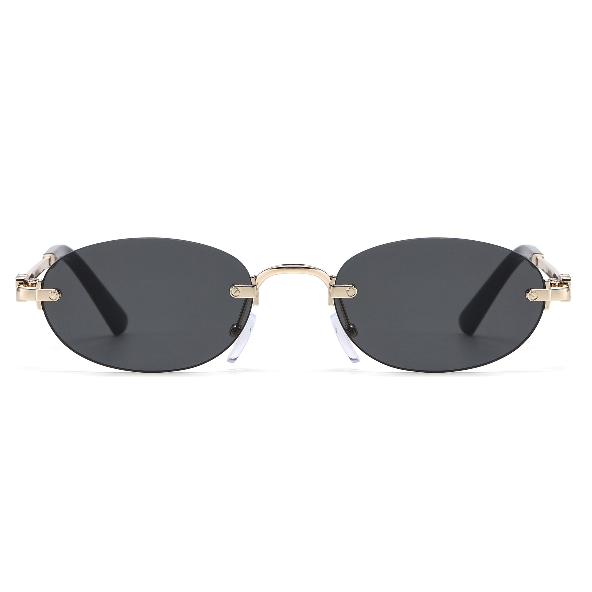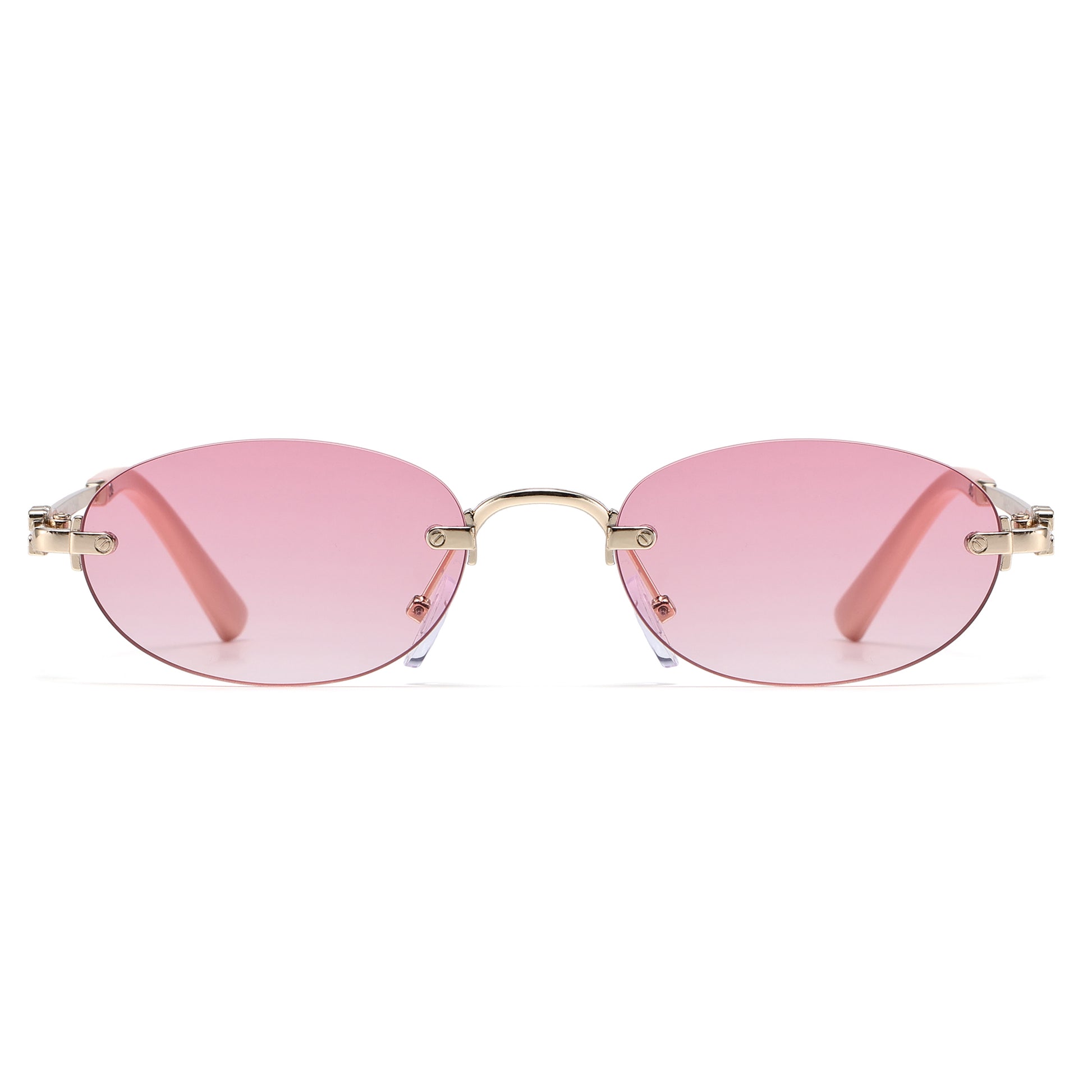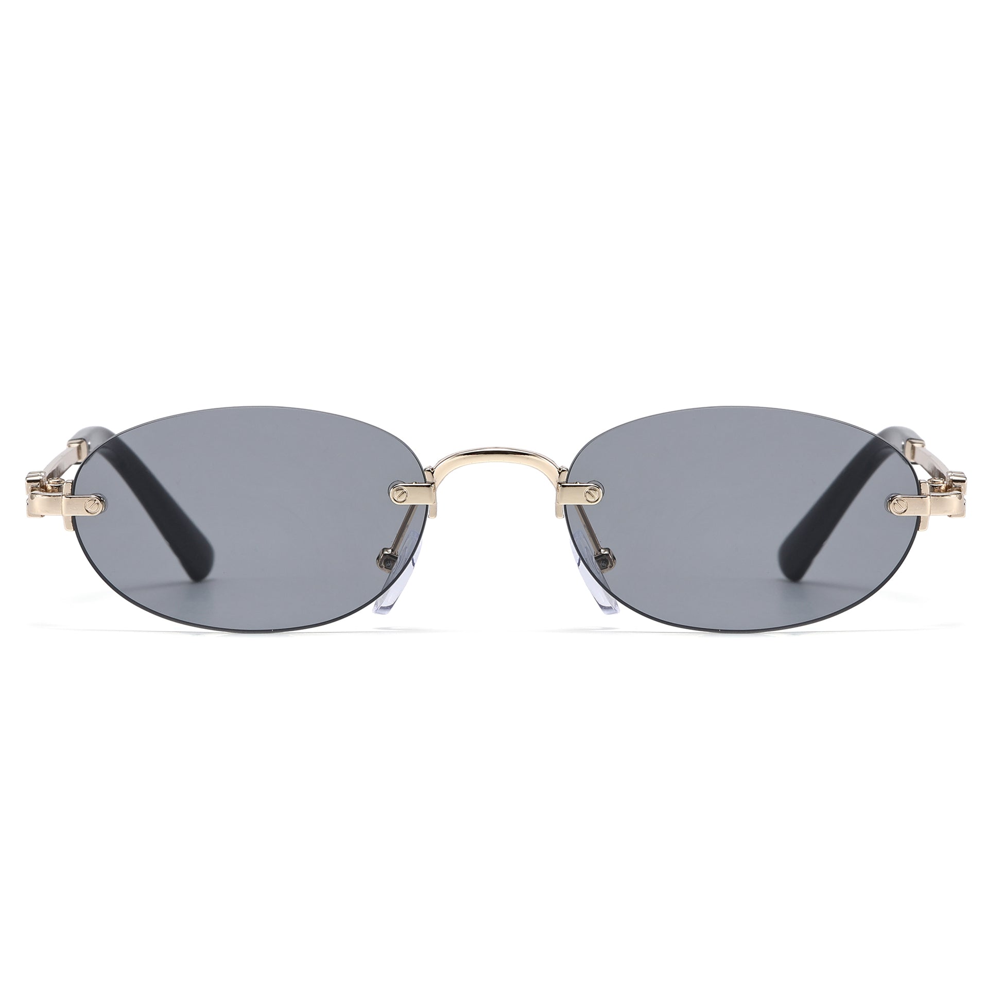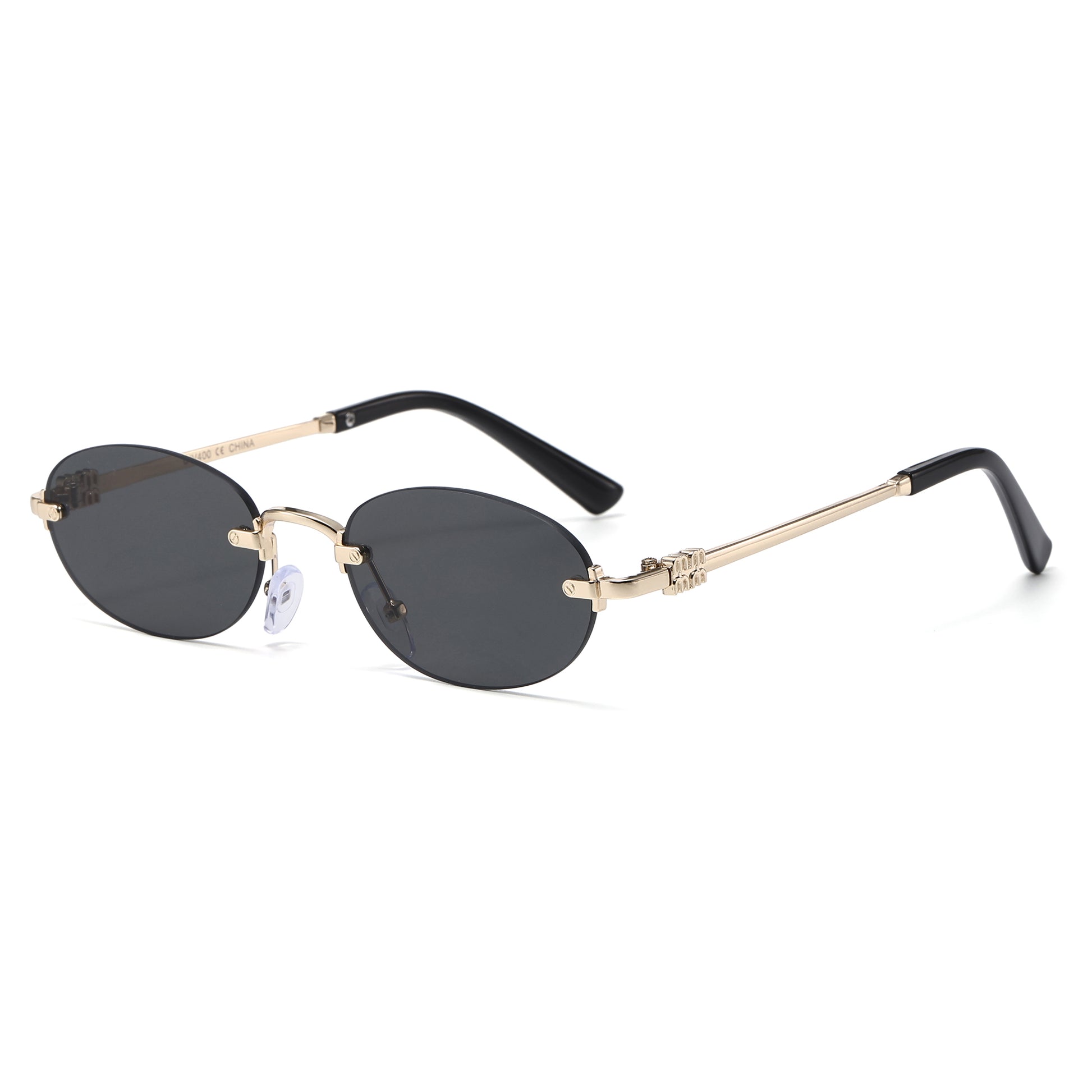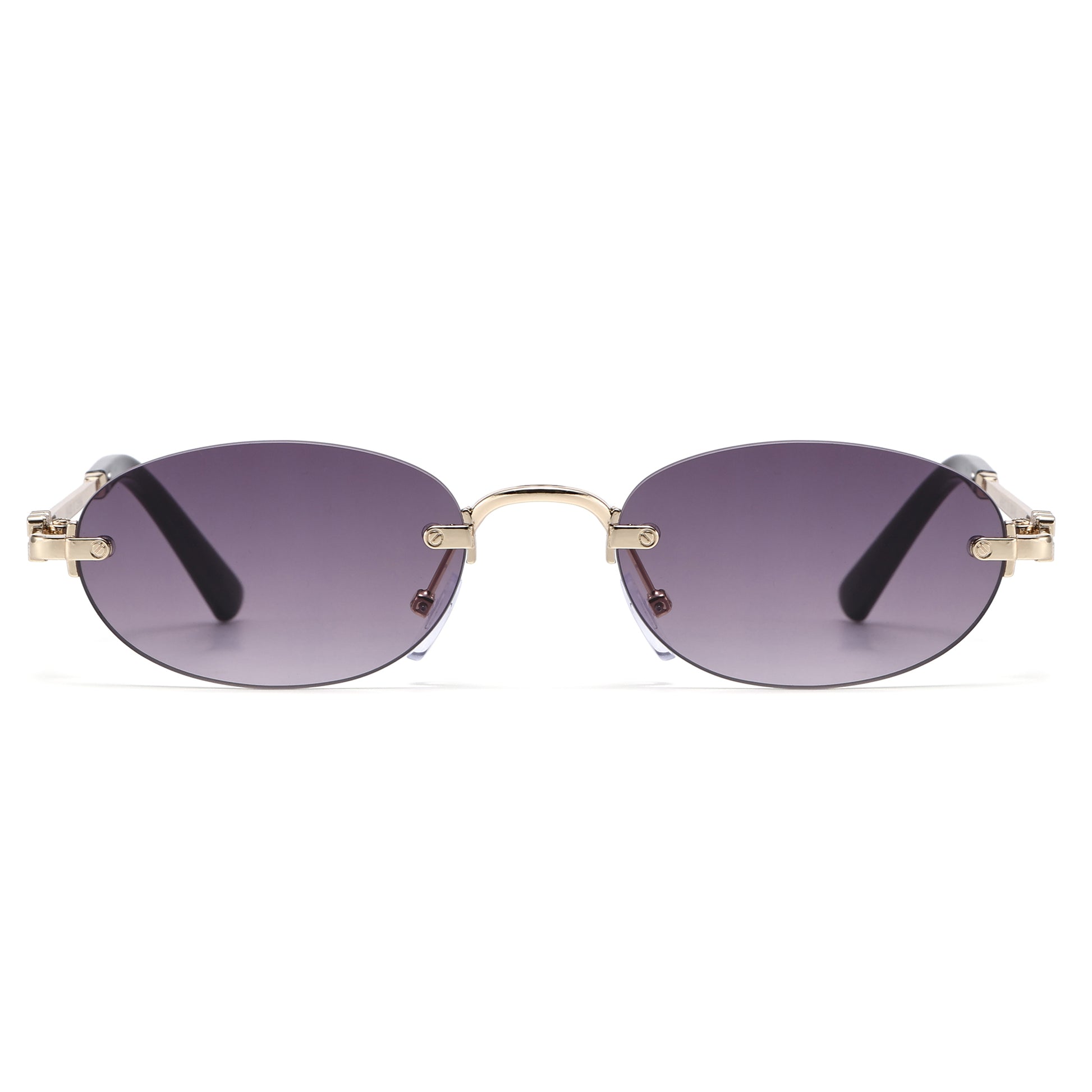 Narrow Rimless Oval Gradient Sunglasses with Gold Temples J11120